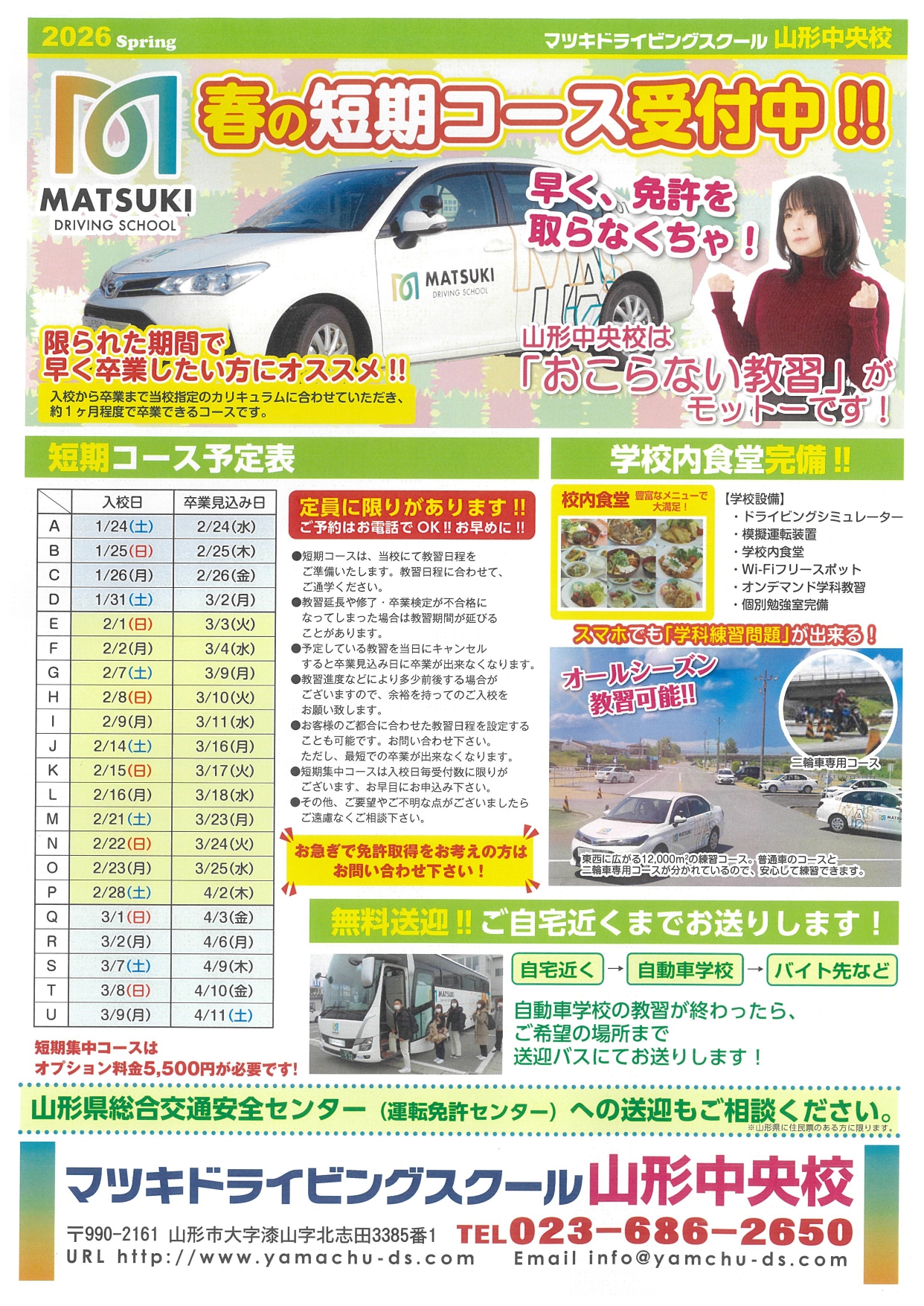2026年もマツキドライビングスクール山形中央校をよろしくお願い申し上げます。